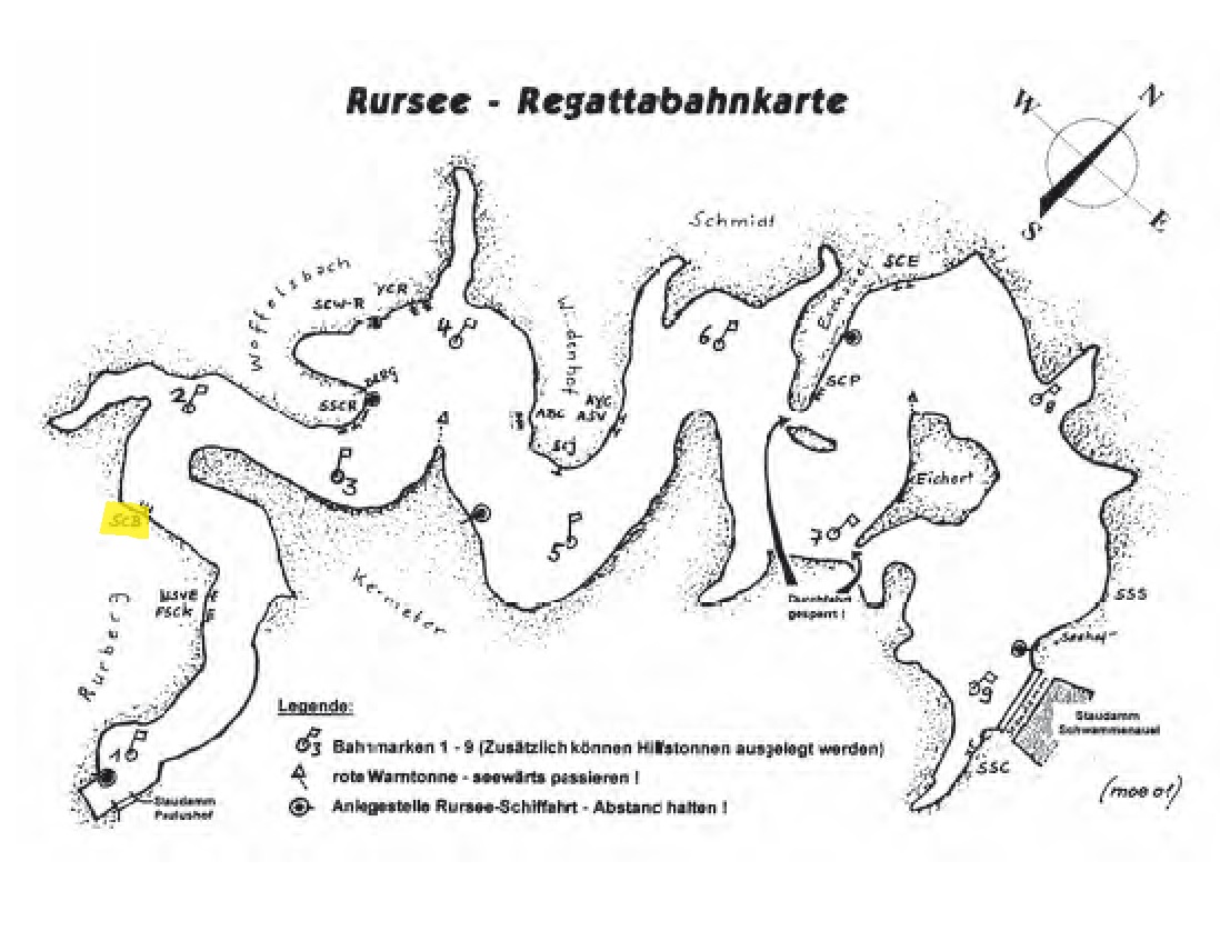 Die Steganlage des Segel-Club Bonn liegt weitgehend windgeschützt zwischen Rurberg und Woffelsbach, sodass man in beide Richtungen zu einem Törn starten kann. Woffelsbach, das Zentrum des Rurseesegelsportes, liegt in nördlicher Richtung nur einige Schläge entfernt. In südlicher Richtung geht es zum Rurberger Becken, wo den Segler wegen der hohen Berge zwar häufig schwierige Windverhältnisse, aber dafür ein beeindruckendes Panorama und das Eingangstor zum Nationalpark Eifel erwartet.